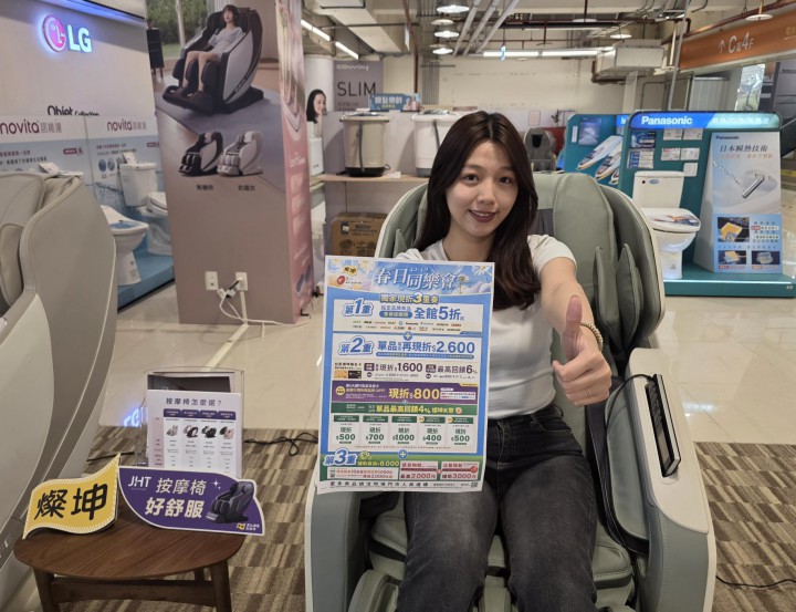 燦坤春日同樂會開跑 全館5折起 滿額抽電競手機與按摩椅