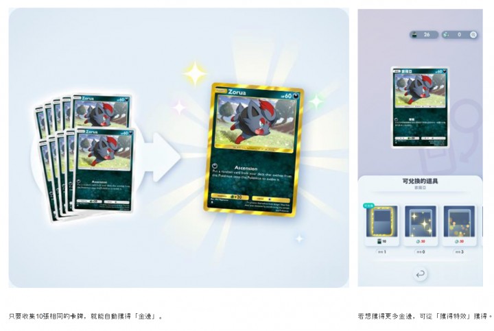 只要收集10張相同的卡牌,就能自動獲得「金邊」。