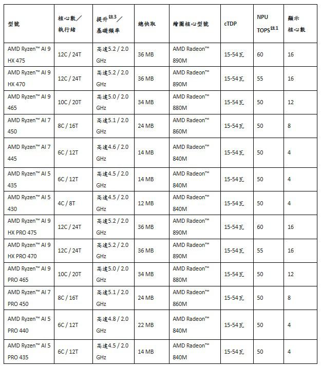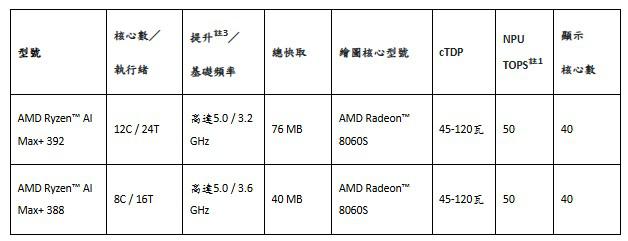 AMD發表Ryzen AI Max+ 392與Ryzen AI Max+ 388,為Ryzen AI Max+系列的新成員,將高效能AI運算、整合式桌上型電腦等級繪圖效能與統一記憶體架構擴展至高階極致輕薄筆記型電腦、工作站及精巧迷你PC。Ryzen AI Max+處理器建立在早期強勁的市場採用基礎上,使OEM合作夥伴能推出為要求嚴苛的內容創作與AI工作負載,以及沉浸式遊戲體驗最佳化的Copilot+ PC,同時兼顧可攜性與使用者體驗。