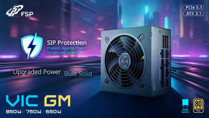 全漢 FSP 正式推出全新 VIC GM 系列全模組金牌電源供應器,鎖定主流電競玩家與系統裝機族群,提供 650W、750W 與 850W 多種瓦數選擇。以穩定可靠的供電品質、支援次世代規格與高性價比定位,協助玩家在升級關鍵零組件的同時,仍能有效控管整體預算,打造更聰明的裝機方案。 VIC GM 系列全面符合 ATX12V V3.1 與 EPS 12V V2.92 最新規範。其中 750W 與 850W 機種 配備原生 PCIe 12V-2×6 接頭,可直接支援新世代顯卡,並具備 最高 200% 功率瞬時輸出能力(Power Excursion),即使面對高負載遊戲或重度運算,也能維持穩定供電。 VIC GM 系列通過 80 PLUS® Gold 金牌認證,在典型負載下提供 90% 以上轉換效率,有效降低能源損耗與發熱量。內部採用 420V 高耐壓主電容 與 Active PFC,確保電力輸出穩定。產品亦通過高溫環境測試,即使在 40°C 環境下長時間運作,依然維持穩定表現。 採用 120mm HYB 液壓軸承風扇,提供安靜且穩定的使用環境。全系列採用全模組化設計,搭配高質感全黑扁線材,讓走線更簡潔,有助於提升機殼內部氣流。內建完整安全防護機制,包括 OCP、OVP、SCP、OPP、UVP、OTP、SIP 與 NLO。 VIC GM 全系列免登錄即享5 年原廠保固,並享有 前 2 年快速換新服務。