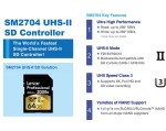 SM2704,支援SD卡最高等級標準UHS-II 匯流排介面及最高傳輸U3等級速度,讀取速度最高可達每秒280MB,寫入最高可達每秒260MB,並保證每秒至少3..