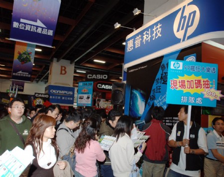 2006年資訊月HP買氣強強滾!HP挾帶全線產品雙品牌、雙核心以及一次到位價格優勢,成功創下200%打破紀錄的銷售好成績︰HP NB銷售三霸主全面提昇HP銷售買氣!HP Merom MCE 黑潮筆電dv2141、dv6104以精品時尚外型、超豪華規格、最優惠價格奪得筆電銷售冠亞軍,此外2萬以下青年機C302也廣受學子熱烈響穩坐銷售第三名!HP為感謝消費者的熱烈響應,限量99台狂降15,000元的電玩奇機瘋狂追加為150台,最後一波限時限量加碼活動,喜愛HP的消費者千萬別再錯過!!」