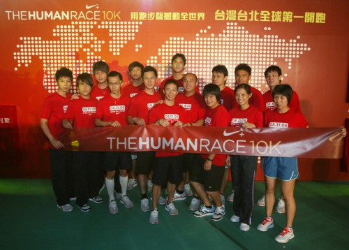Nike邀請超馬好手林義傑、中華職棒明星球員張泰山、潘威倫、高志綱、Nike SBL球星田壘、林志傑、陳世念、陳志忠慢跑好手張嘉哲、許玉芳、吳婉菱、射箭國手袁叔琪、星光三少-潘裕文、周定緯、許仁傑,15位不同領域名人擔任Nike+ Human Race大使,並於記者會上進行「啟動儀式」,爲橫跨5大洲、25個城市點燈,宣告Nike+ Human Race活動正式開跑,15位大使隨後爲Nike+ Human Race展開「暖身跑」,以傳遞接力方式,象徵全球接力,號召跑者加入路跑行列,083108站上世界的起跑線,一同與全世界串聯!15名Nike+ Human Race大使於暖身跑中,配戴劃時代慢跑科技新品Nike+ SportBand,除紀錄個人路跑成績,並連結Nike+全球跑步社群,亦提供即使不在25個城市內的跑者,依然可透過Nikeplus.com與全球跑者同步紀錄,一同秉持著Just Do It的精神,與全球跑者一同爲Nike+ Human Race進行訓練與準備!