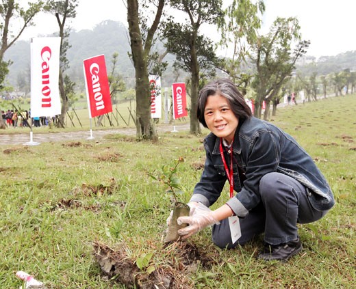 全球光學影像領導品牌Canon一直秉持企業理念「共生」(Kyosei),積極善盡企業社會責任,針對社會公益與環境保護議題,持續挹注企業資源,並積極展開環保綠行動。今年適逢Canon歡慶在台灣成立分公司十週年,為讓下一代擁有優質的生活環境與美好未來,同時展現環境保護的決心,Canon積極響應由喜馬拉雅自然文明保護協會及台北市政府所發起的「2011百萬森林在台北」大型植樹活動,於4月23日世界地球日期間在木柵福德坑環保復育公園,種下一萬棵以上的台灣原生樹種,作為生態復育之用,此次除了總統馬英九、立法院長王金平、台北市長郝龍斌都到場支持這項極有意義的植樹活動,還有眾多知名企業攜手響應,例如: 渣打銀行、仁寶電腦、緯創資通、冠德建設、裕隆、技嘉科技、遠雄集團…..等,總計多達一萬五千多位民眾來到福德坑公園,一同為打造台灣原生樹種森林保育園區而努力,為台灣下一代的純淨環境圓夢。此次Canon特別號召百位以上企業志工一同響應,攜手為環境永續盡一份心力!
