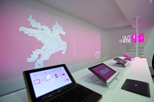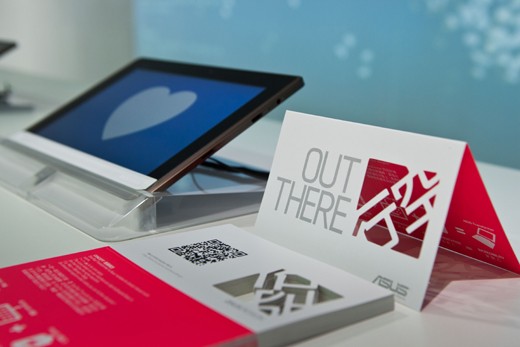 本次的設計大展華碩以「Out There 行空」為名,由華碩設計中心創建一個由織品帷幕搭成的自由國度,虛實之間先給人遨遊雲端的恣意想像;而當佇立其中,揮舞雙手,又能藉由親手操控科技實體,在互動投影的畫布上揮灑出無限可能。一直以來,華碩設計中心秉持「Start with People」,以人為本的設計理念,滿足人的渴望與使用需求,並且持續不斷提出創新概念,此次「Out There 行空」主要象徵、傳達華碩在產品設計上無限可能「精采創新」的方程式:想像力(Imagination) + 創造力(Innovation) + 落實力(Implementation) = 驚艷力(Incredibility)。