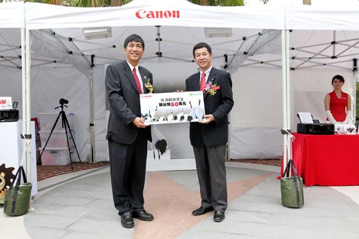 Canon台灣總裁鎌田 篤(Andy Kamata)特別在10月30日於台北市立動物園特別為丹頂鶴舉辦的「丹頂鶴開展暨遷園25週年慶祝活動」活動現場,代表Canon捐贈新台幣五十萬元予臺北市立動物園,作為照護丹頂鶴的保育金。鎌田 篤總裁表示:「Canon秉持共生的企業理念,希望以實質行動,幫助丹頂鶴在台灣這片土地上安身立命並繁衍出下一代,也希望讓民眾從體驗中認識動物,教導更多民眾認識稀有動物丹頂鶴,擁有正確的保育觀念,進而喚起更多人重視瀕臨絕種動物的保育議題。」而Canon為了讓更多大小朋友認識丹頂鶴,特別於記者會當天以及接連兩週週末舉辦「Canon與您一同保育丹頂鶴」即拍即印活動,消費者可透過簡單的遊戲認識丹頂鶴,並可於Canon精心設計的丹頂鶴背板前即拍即印,免費獲得特製的丹頂鶴相框與相片一張,於週末午後和丹頂鶴留下難忘的回憶。
