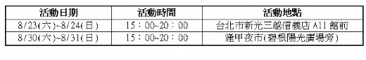 為讓消費者便利體驗4G服務,台灣之星也將於8月23日及8月30日連續兩周週六及週日,分別在台北信義新光三越A11館和台中逢甲夜市舉辦的「全網公測環台體驗」活動,現場除進行活力熱舞、Q&A快問快答外,還可玩特製超大型0元形狀的扭蛋機,並在4G體驗區進行互動遊戲送手機、行動電源、配件等好禮活動,歡迎全台各地的朋友到場,感受我們熱情快樂的心情,共享周末假日時光!