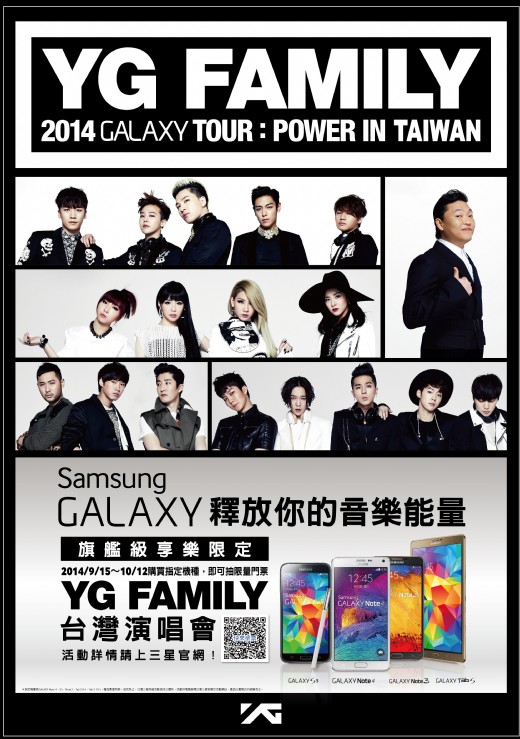 三星電子,致力於提供三星愛用者良好的產品使用經驗,更不忘提供專屬福利給三星愛用者。近年來,三星積極與Young Minded的活力新世代溝通,持續以潮流音樂深化三星與消費者的連結,讓粉絲不用出國,也能感受超級音樂舞台魅力。今年,三星更與韓國超強音樂娛樂公司YG Entertainment合作,將台灣列為旗下年度音樂盛事「YG FAMILY世界巡迴演唱會」的壓軸場,包括PSY、BIGBANG、2NE1、WINNER、EPIK HIGH都將登場演出,預計10月25日將在桃園縣立田徑場讓韓流魅力襲捲全台!而三星粉絲更享有多項獨家好康,除了演唱會門票、近距離彩排派對及接觸等獨家搶先參與機會外,還有機會獲得偶像專屬商品!