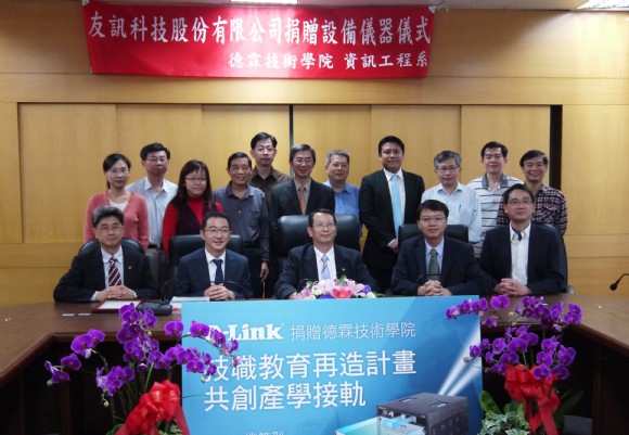 為配合教育部所擬訂的「技職教育再造計劃」,D-Link友訊科技特別捐贈DGS-6600機箱型交換器管理模組等產品予德霖技術學院,作為堅實技職教育再造計畫教學設備之用。捐贈儀式假德霖技術學院堉琪樓舉辦,D-Link友訊科技台灣分公司總經理鍾振遠親自出席,儀式中與協辦單位亞太多元學習協會代表及德霖技術學院校長羅仕鵬共同進行相關宣告。羅校長在表示感謝之餘,亦肯定D-Link對於提升教學品質之用心,更希冀藉此達到拋磚引玉之效,讓更多企業為教育盡一份心力。