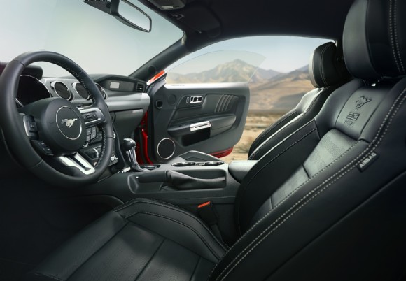 2015 Ford Mustang傳承經典的車系設計,保留長車頭、短車尾、斜背式後車頂與三只獨立式尾燈等元素。而Ford Mustang 50周年限量紀念版以2015 Ford Mustang為基礎,車尾換上50週年野馬專屬廠徽,車室部分則搭配Ford Mustang 50週年經典徽章、運動皮椅以及淡銅色金屬刷紋座艙飾板。