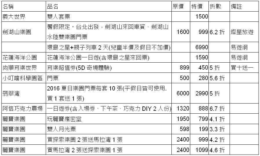 劍湖山來回車資、劍湖山水陸雙樂園門票。(7/1~8/31)