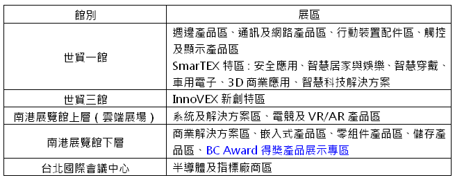展覽地點:台北南港展覽館、世貿一館、世貿三館、台北國際會議中心