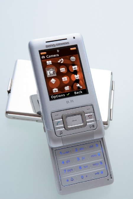 - EL71: 繼推出金屬質感的EF81掀蓋式手機及S68直立式手機後,BenQ-Siemens再發表由鋁鎂合金打造的EL71滑蓋手機,16.5mm的輕薄設計及金屬時尚質感備受矚目,搭配ProSlide®半自動滑蓋技術,展現精緻細膩的工藝美學,而2吋26萬色的QVGA螢幕(240 x 320 畫素),不論身處室內或戶外,皆可擁有清晰細膩的畫質顯示。