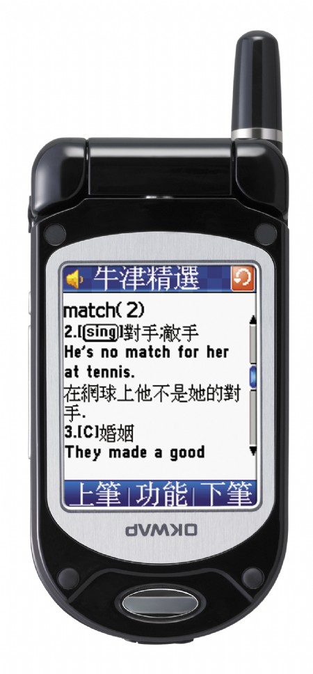 根據調查,消費者最常使用的翻譯機功能,字典佔73.7%、發音佔68.6%、會話功能則佔46.3%,OKWAP S858內建牛津精選字典、真人發音狄克生片語、徐薇薇笑說英語、天天英語通以及中英日三國會話等功能,皆囊括消費者最需要的英語學習功能。為了幫助消費者在行動英語學習更專業、更有效益,除了原內建的專業牛津精選字典外,新版軟體更支援其真人發音功能,讓消費者查詢單字時可直接了解正確的發音,英語聽說能力再進階!