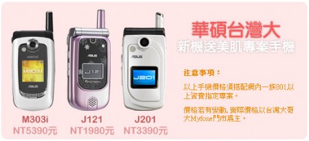5 月 1 日起至全省台灣大哥大 myfone 門市,申辦新門號或續約,搭配 華碩手機 M303i、J201、J121 任一款,即可免費把台塑生醫專業團隊依東方女性膚質特性研發,市價 2,200 元的「FORTE晶澈美白寵愛禮盒」帶回家,禮盒內不僅有潔面露、化妝水、精華霜、面膜,還有 200 元商品抵用券。對消費者來說,只要至台灣大哥大選購華碩「新機送美肌」專案,就能一次擁有華碩時尚輕巧手機和「FORTE晶澈美白寵愛禮盒」,在溫馨感恩的母親節,相信這是用來討好和慰勞天下媽咪的最佳選擇!