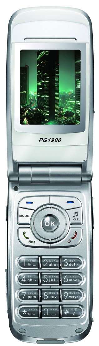 PG1900共推出鐵灰、勁白、香檳金三種色系供選擇,再加上擁有PHS與GSM(900/1800/1900)雙模四頻、支援PHS與GSM雙待機模式,日系風外觀,優雅簡約,彩色雙螢幕更讓你瀏覽接聽更為方便。2吋26萬色主螢幕搭配內建130萬畫素的數位相機,可多段式數位變焦,內建閃光燈、曝光補償、夜拍模式及避免閃爍等功能。其日系血統更支援三連拍及五連拍、18種特效設定、10種圖文框等強大功能,讓愛拍照的人隨時都可跟親朋好友走到哪拍到哪。