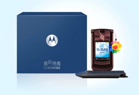 同時,為呼應一系列活動的主題樂趣,並滿足消費者對摩托羅拉與村上隆美學對談的期待,摩托羅拉特別精心設計推出「MOTORAZR x村上隆 繽紛時尚典藏組」,將搭配MOTORAZR V9十二月上市時贈送,內含時尚皮套及村上隆原創、日本空運來台的村上隆微笑小花吊飾 (彩虹限定版),套裝限量、送完為止,是喜愛MOTORAZR與村上隆的消費者非要不可的珍藏,敬請期待!