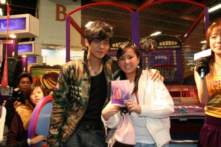BenQ資訊月下戰帖,不但全產品銷售熱烈,話題性活動如抽直升機之旅及灌籃高手亦讓攤位人氣high到最高!今天更邀請BenQ歡樂活力大使羅志祥蒞臨現場與民眾互尬籃球,BenQ亦使出殺手鐧,由台灣區總經理洪漢青親自出征,並加碼預測投籃勝敗抽獎送出二隻BenQ C30手機。同時現場並進行BenQ T51紅粉知音小豬簽名手機一元競標活動,來自新加坡的超級歌迷林小姐以11,000元高於市價二倍的價格購買到獨一無二的小豬親筆簽名手機!