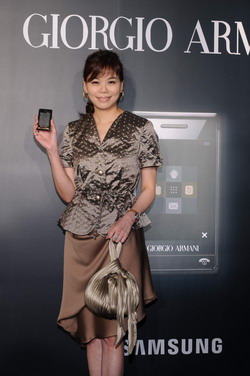 Giorgio Armani-SAMSUNG手機頂級風潮自歐洲延燒至台灣,包括文華花苑「陳妍嵐」、清歡家飾「李坤儀」、八方新氣「王筱杰」、中興航空「戴嘉瑱」、凱渥名模「白歆惠」、醒吾少東「顧奇明」、時尚教父「鄭建國」、與嘉裕大中華區副總「溫筱鴻」,今日紛紛穿上了Giorgio Armani價值10至15萬元的春夏新款出席Giorgio Armani-SAMSUNG手機尊爵鑑賞會,主辦單位SAMSUNG更大方贈與與會貴賓一人一支Giorgio Armani-SAMSUNG手機,讓陳妍嵐、李坤儀、鄭建國…等人,成為全台第一批搶先感受Giorgio Armani-SAMSUNG手機不凡品味的時尚名流!現場中興航空千金戴嘉瑱於拍照時不慎將Giorgio Armani-SAMSUNG手機滑落,名流們皆一同驚呼,深怕摔傷如此頂級的手機,心疼喜愛程度可見一斑。