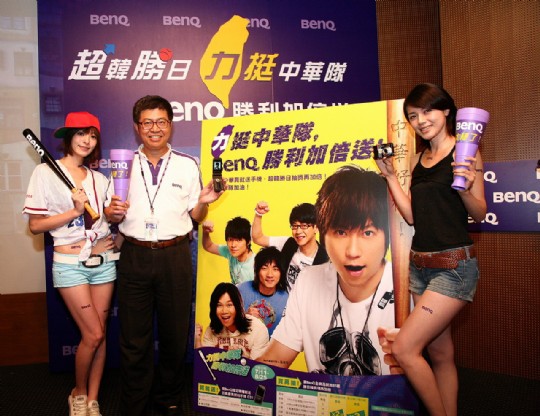 BenQ台灣區總經理洪漢青表示,台灣對棒球運動有著很深的感情,亦造就了不少位台灣之光。中華隊能打進2008奧運棒球賽,身為國產品牌的BenQ與有榮焉,投資超過千萬舉辦全產品行銷活動回饋消費者,並邀請全台民眾一起為中華隊加油。一直以來,中日及中韓大戰是最受矚目的焦點,而BenQ在台灣3C市場亦努力超韓勝日創下佳績,如BenQ Full HD大型液晶在2008上半年超越日韓系品牌,拿下單機銷售冠軍;數位相機亦是在日韓系品牌主宰的市場中,市佔率攀升到6%,穩居國產第一。