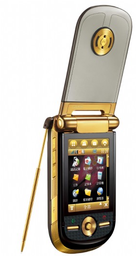 絕世巨獻MOTOMING A1600「金典限量版」,承襲摩托羅拉PDA「明」系列透明翻蓋等指標性設計精髓,以及一應俱全的商務與娛樂功能,包括領先業界的智慧手寫識別技術、觸控式GPS導航等熱門應用工具。此外,更首次融入極致奢華元素,為商務精英煉造卓爾不群的尊爵品味,以臻選鎏金工藝打造至尊奢華,將經典的金色昇華為經典洗鍊的不朽之作。MOTOMING A1600「金典限量版」手機前蓋聽筒和後蓋設計,均採用摩托羅拉LOGO標誌;側邊快捷操作鍵以及後蓋上的攝影頭周圍等細微之處,亦以高科技真空鍍金工藝處理,細膩精緻的浮雕飾紋環繞鍍金工藝打造的手寫筆身,完美線條宛如盤龍蜿蜒,盡情揮灑王者風範;典雅皮革紋背蓋,清晰紋理更顯超凡掌中觸感,儒雅氣質不言可喻。