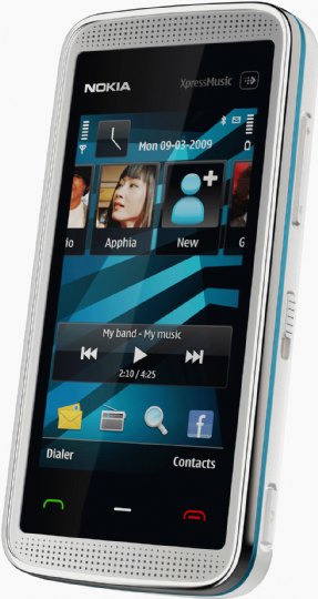 強打年輕族群的觸控音樂手機Nokia 5530 XpressMusic,獨具魅力的纖薄設計,搭配金屬拋光外框,手感滑順輕巧,外型亮眼。Nokia 5530 XpressMusic 的16:9 寬螢幕為1,670萬色,解析度高達640x360,可完美顯示相片、影片、與網路內容的鮮明色彩與真正清晰度,方向感應器可自動偵測橫向閱覽模式。寬螢幕之比例搭配每秒30畫格(fps)播放或15畫格(fps)錄影,是理想的錄影與播放裝置。簡單好上手的觸控式音樂播放介面,在指尖輕敲螢幕進入全觸控的人性化操作介面,左右拖曳的聯絡人列可將多達20位好友加到你的主螢幕中,用戶並可於桌面輕鬆快速存取聯絡人資料、簡訊、通訊記錄以及部落格RSS更新等其他更多資訊。