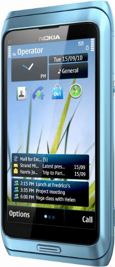 ─ 極致的商務智慧型手機。內建Microsoft Exchange ActiveSync,Nokia E7提供直接、及時以及安全的方式使用企業電子郵件與其他個人應用程式。採用Nokia ClearBlack技術的4吋觸控式螢幕可增進戶外光線下的可見度;搭配全鍵盤設計,商務人士將發覺Nokia E7有著完美身形,讓您不管是瀏覽文件、報表或檢視修正簡報都無往不利。對企業,諾基亞也提供了搭配企業級安全防護解決方案的組合。Nokia E7建議售價495歐元(不含稅及補貼)。