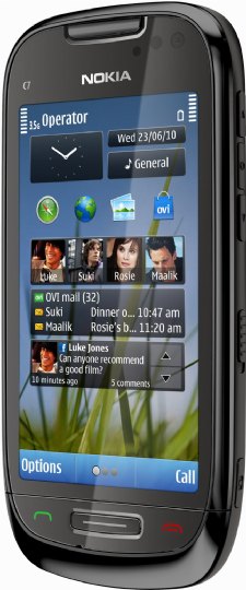 ─ 精心打造,具有流暢外型的智慧型社群網路手機。輕鬆自社群網路如Facebook或Twitter擷取最新的消息,或透過首頁待機畫面與來自Yahoo!、Gmail帳戶的電子郵件保持聯繫。Nokia C7採用了3.5吋的AMOLED觸控螢幕,以及由不銹鋼金屬、玻璃鏡面與柔順線條構成的驚艷外型。Nokia C7建議售價335歐元(不含稅及補貼)。
