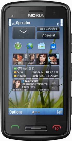 ─ 精巧而時尚的智慧型手機。採用3.2吋AMOLED全觸控螢幕,搭配Nokia ClearBlack技術增進戶外光線下的可見度。最新款的Nokia C6 (C6-01)在其不鏽鋼金屬與玻璃鏡面搭配的設計下,帶來的是最佳的社群網路與行動娛樂功能。隨時透過電子郵件保持聯繫、在Ovi音樂上取得超過百萬首歌曲,或上Ovi商店下載各式各樣的應用程式與遊戲。Nokia C6 (C6-01)建議售價260歐元(不含稅及補貼)。
