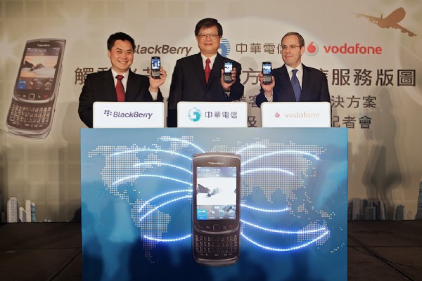 中華電信今日 (1/24) 宣布與Research In Motion (RIM) 合作,正式推出BlackBerry產品及服務,為台灣跨國、在地企業及消費者提供更完整、更優惠的行動解決方案;記者會上同時宣布中華電信「3G黑莓」超值購機方案,申辦此方案客戶可獨家享有免費「數據漫遊超值型」服務,在全世界23國24網享受每月10MB的數據傳輸量,另還可獲贈F1 Vodafone (沃達豐) 麥卡倫車隊手機背蓋及BlackBerry原廠展示型座充。
