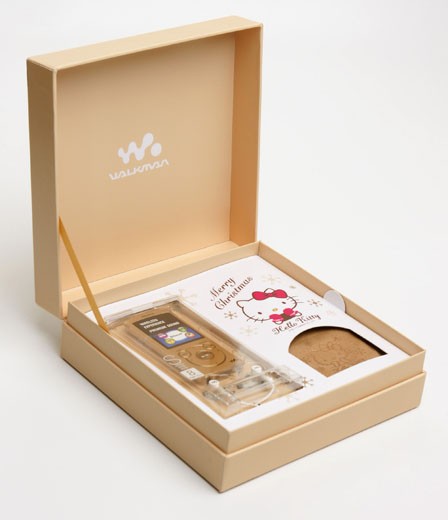 迎接即將到來的聖誕節,Sony特別推出限量100套的Hello Kitty‧Walkman 金色聖誕精裝限量組。配合秋冬時尚潮流,精選輕薄美型的金色款Walkman數位隨身聽【S764】,在機身上雷刻最能呈現聖誕氣氛的Hello Kitty圖騰,從專屬提袋、外盒包裝到內附的麂皮收納袋,隨處可見可愛的Hello Kitty身影,每組並隨附獨一無二專屬編號的珍藏限量證書,是女孩們今年最想要的聖誕禮物,更是Hello Kitty迷不可錯過的最佳收藏。
