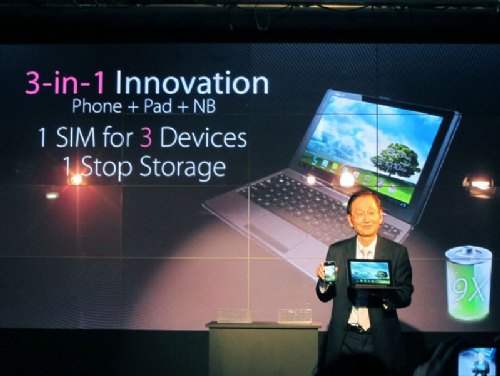 「行動雲端時代終於正式到來!我們將能隨著使用需求把想要的畫面呈現眼前,隨時隨地與世界接軌。」董事長施崇棠隆重揭示華碩劃時代「再變形」產品PadFone,搭載PadFone平板、PadFone鍵盤基座之後,智慧擁有手機、平板、小筆電三種功能,開啟行動運算及溝通的新未來。