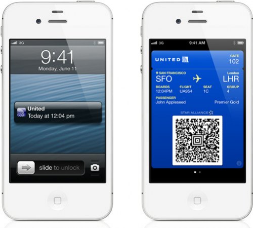 Passbook 算是一個嶄新的功能,可將登機證、電影票、折價券通通整合在一個 App 中,只需秀出 iPhone 或 iPad 的票證畫面便可通關登機、走入電影院、或享用折價券。而且還可查詢折價券何時過期、或是演唱會座位號碼、或是咖啡店的消費餘額。Passbook 也有動態更新功能,譬如登機閘口若有變更時,也會發出警告讓用戶不致於走錯閘口。