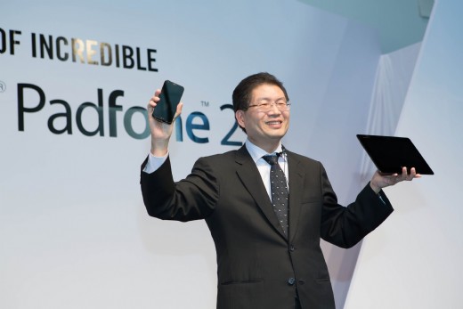 華碩以追尋無與倫比的精神積極布局智慧行動通訊市場,今(16)日由華碩董事長施崇棠於時尚之都米蘭、執行長沈振來於台灣,聯手推介PadFone 2變形手機,開創全新智慧型手機使用體驗。華碩全新力作PadFone 2變形手機以領導業界的機王規格與創新直覺式使用體驗極力搶攻智慧通訊消費族群。搭載業界最高規格四核心Cortex A15 class CPU、1300萬畫素相機,PadFone 2變形手機葛萊美獎等級音效體驗更讓影片、音樂欣賞成為至高享受。手機與平板基座結合後僅649克,穩坐業界最輕盈寶座,即時動態切換擴增螢幕視界,超大儲存空間再搭配獨家華碩雲端應用服務,智慧行動力完美呈現。