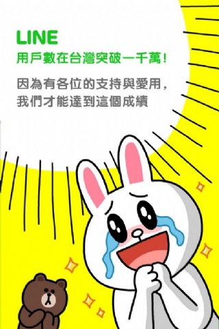 全球領先的社交網路服務行動傳訊平台LINE宣佈台灣使用者人數已突破一千萬大關。LINE針對台灣使用者的需求及興趣設計並舉辦大量的活動,也因此達到了台灣用戶數高達近一半總人口數的里程碑。這項突破顯示LINE已成為台灣極具代表性的行動傳訊平台。