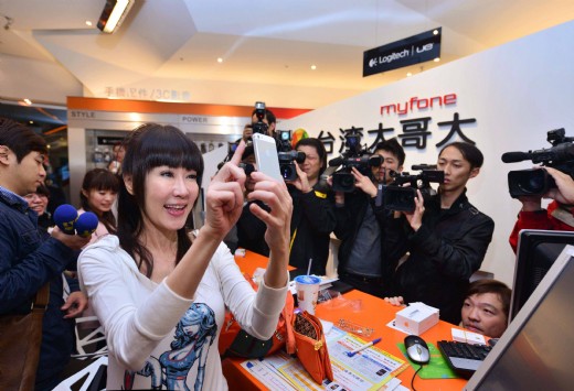iPhone 5 開賣令「果粉」瘋狂,就連從不早起的藝人羅霈穎也起個大早,3點先請助理來卡位,6:50親自到台灣大哥大威秀店邊吃早餐、邊排隊,跟上百位排隊民眾搶iPhone 5,成為全台首位拿到iPhone 5的頭號果粉。羅妹妹一襲白色連身超辣短裙到場,跌破所有在場民眾的眼鏡,民眾大呼:「iPhone 5魅力真大,東區一姐果然名不虛傳,連iPhone 5都要搶頭香!」在門市人員的倒數下,7:20一到,羅妹妹就與門市人員一起奮力撕下海報、衝入門市申辦iPhone 5,並喜孜孜地秀出她的新手機,立刻裝上前一天就買好的bling、bling外殼,她直呼「原來早起好處多多耶!」羅妹妹現場還說,「白色iPhone 3、白色iPhone 4都有了,當然新的iPhone 5也不能放過,所以早就請助理搶先預購白色、32GB的手機」至於手邊iPhone 3、iPhone 4要如何處理,羅妹妹則說「通通當禮物送給小男友囉!」