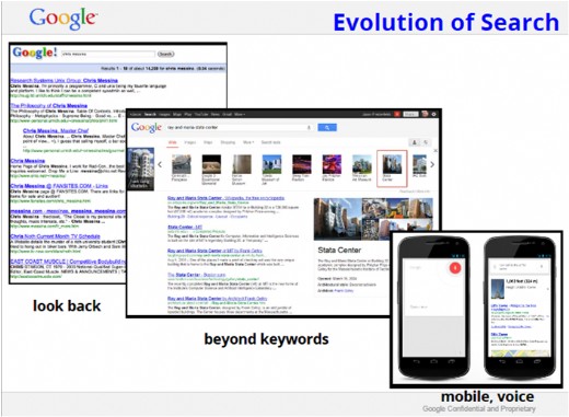 Google致力於提供使用者最個人化的資訊,以及最好的搜尋體驗,因此搜尋技術不斷演進,從過去10條藍色文字的搜尋結果,到圖片搜尋、語音搜尋,更於2012年Google I/O期間,隨著Android 4.1 (Jeally Bean)的推出,加入了全新的「Google Now」功能,使用者尚未搜尋前,便主動提供使用者日常生活所需要的正確資訊,讓使用者可以專注在更重要的事情上,節省更多時間,使生活更為便利、工作更有效率。