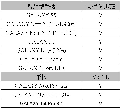 註六:提供VoLTE服務必須手機與電信商相互配合,可支援VoLTE的機種將依照三星官網公告為主。