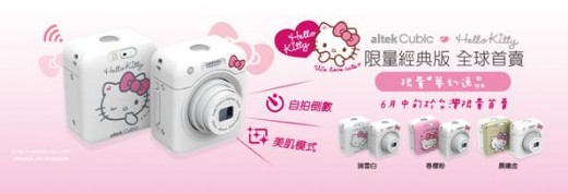 華晶科技,為回饋廣大消費者對altek Cubic自拍神器的熱情支持,攜手與日本三麗鷗公司(Sanrio Company, Ltd)的超人氣偶像Hello Kitty合作,推出全球獨一無二的Hello Kitty Cubic Camera台灣限量版,為消費者帶來可愛氛圍的數位生活。