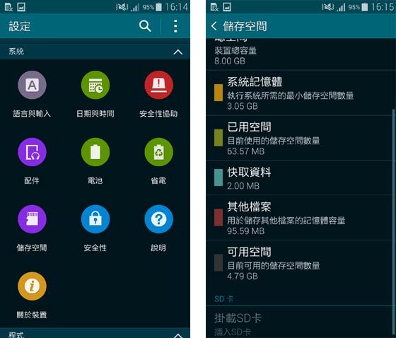 首次開機後,8GB ROM 可用的記憶體剩約 4.8GB: