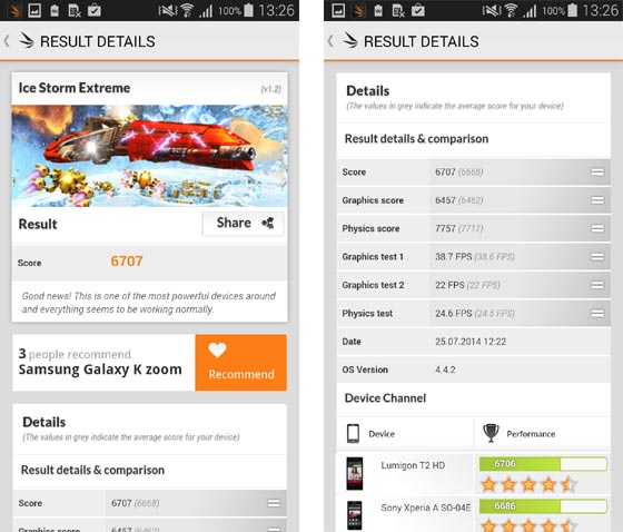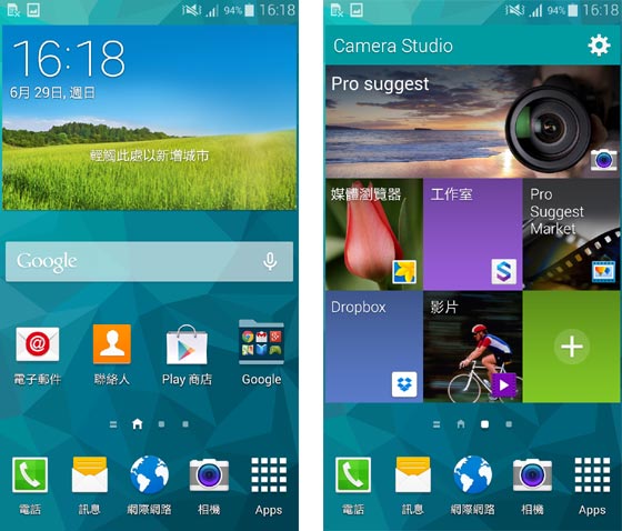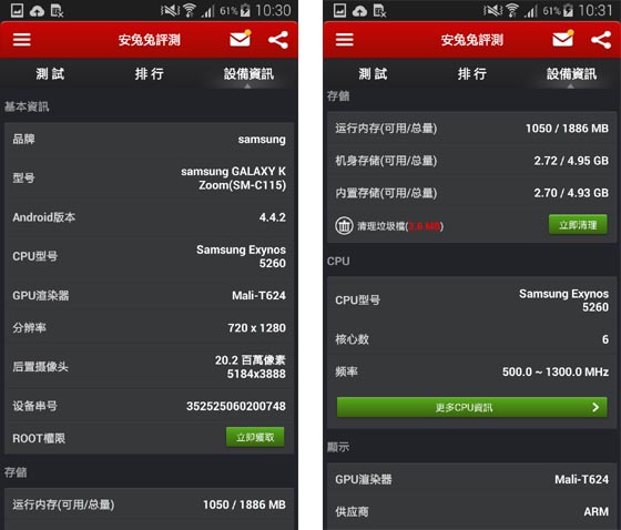 可看到 CPU 採用 Samsung 自家的六核心 Exynos 5260,4.8吋螢幕畫素只有 720x1280, Super AMOLED 色彩表現則相當艷麗: