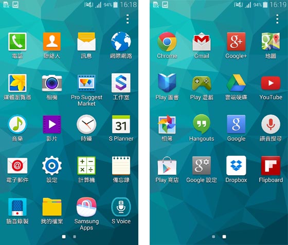 預載的程式集約兩頁,也包括了免費的 Dropbox 空間、Flipboard等: