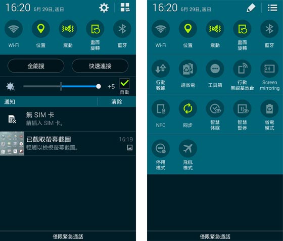 圖示酷似 iOS 7 的扁平風格,也可自定通知列的快捷圖示: