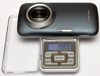 但也因為加掛了這個鏡頭,全機重量約 199g (含電池不含 SIM、microSD),拿在手上會感覺沉重一些: