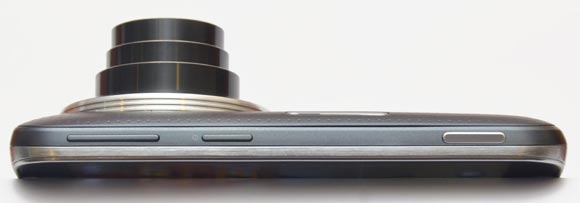 除了可使用螢幕上的快門圖示外, K zoom 側邊也建置了獨立的快門按鍵(下圖右側),具備半按快門對焦能力,下圖左側邊的音量鍵在拍照時也是變焦按鍵,因此拍照的操作手感與一般數位相機幾乎無異: