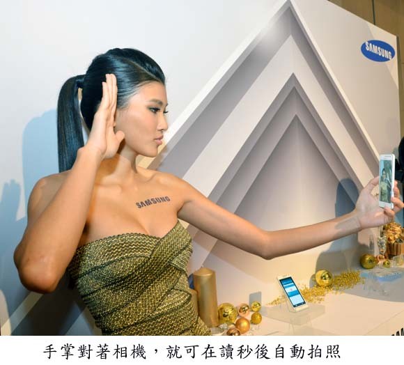 GALAXY A5及GALAXY A3前鏡頭皆高達500萬畫素。同時整合多元自拍功能,如「手掌自拍」功能,使用者只要張開手掌,便能啟動自拍倒數。此外,內建全新「美美自拍模式」包含三種自拍功能,包括V臉模式、睛漾模式和臉部潤色,使用者能隨意分別調整各8段式強弱程度。此外,更支援橫拍高達120˚,直拍高達110˚的「超廣角自拍」;微短片GIF功能則輕鬆拍出”會動的照片”,增添自拍樂趣外。