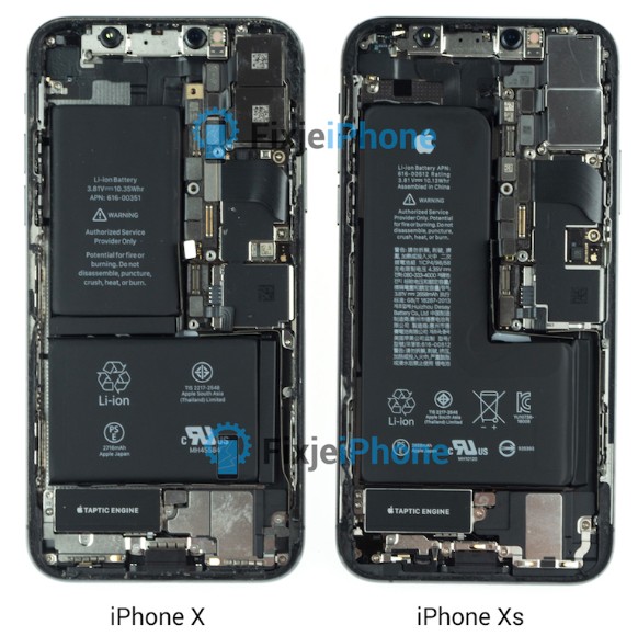 荷蘭網站 FixjeiPhone 今日公佈了一段拆解 iPhone XS 影片,率先 iFixit 完成了 iPhone 的分解。從這段長約八分鐘的影片中可看到,機身尺寸相同的 iPhone XS 與 iPhone X 在內部結構配置上也大同小異,最大的差別是原先在 iPhone X 的兩段式電池,在 iPhone XS 上改用了 L 型結構,而令人訝異的是電池電量卻只有 2658mAh,比起 iPhone X 的 2712mAh 還少了 2.2%,但電池續航力卻比 iPhone X 還多半小時,這應該歸功於 A12 Bionic 晶片的 7nm 製成帶來的低耗電效能 (感謝台灣之光 TSMC 台積電)!