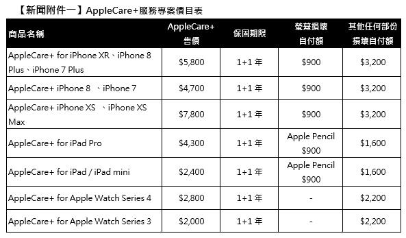 註1:AppleCare+服務專案是一項保險產品,產品內容須以Apple官網公告為準。
