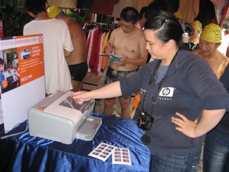 HP的隨拍即印照相亭位於日月潭長泳的終點站,無論是成功完泳的游泳好手,或是參加嘉年華的民眾,只要憑個人數位相機記憶卡至HP列印區,即可透過HP的觸控式相片印表機,免費將自己相機裡的個人照片製作成獨一無二的日月潭明信片。同時,HP設置隨拍即印體驗區,民眾還可以親自體驗HP獨家發表的簡單觸控列印,現場填寫體驗感想,還能獲得HP秋冬印表機新品專用的相片體驗券(價值約NT400元),採購新機更超值!