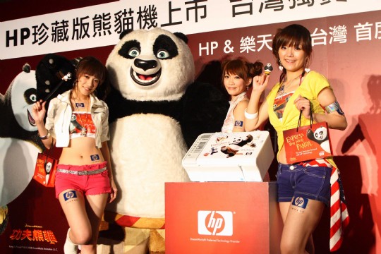 最後,吳副總宣示:「HP家用噴墨印表機在台銷售量已經連續十四年第一名,2007年噴墨印表機整體市佔率46%,All in One 多功能事務機更高達50%!HP再接再厲向自我挑戰,冀望帶給台灣消費者更多更棒的列印經驗和樂趣;本次HP推出功夫熊貓系列活動,我們以『新品到位』、『網購通路』及『活動體驗』三管齊下策略,全力搶攻暑期年輕族群市場,預計HP噴墨印表機今年在台市佔率將可望突破60%!」